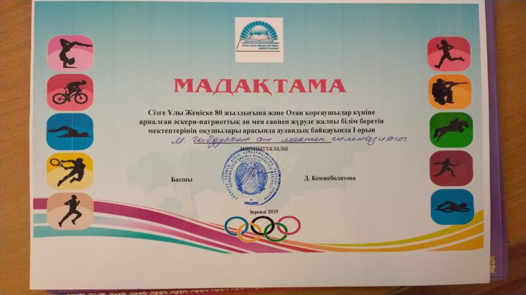 28.11.2025 ж 10-11 сынып оқушылары арасында өткен «Алтын сақа» олимпиадасының аудандық кезеңіне 5 оқушы қатысып, төмендегідей нәтиже көрсетті.