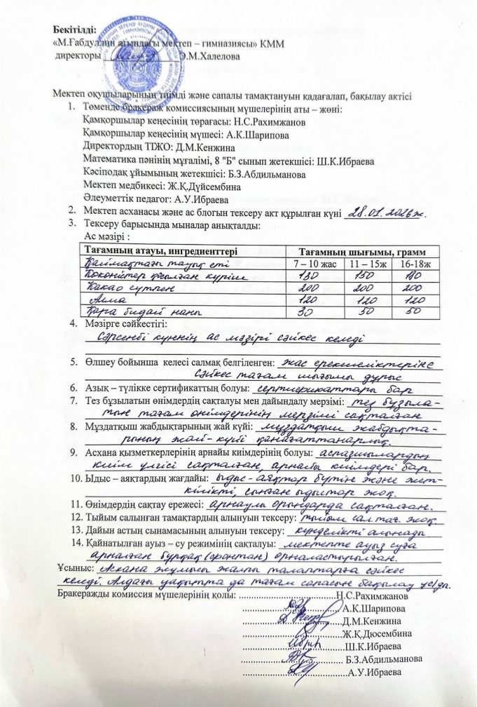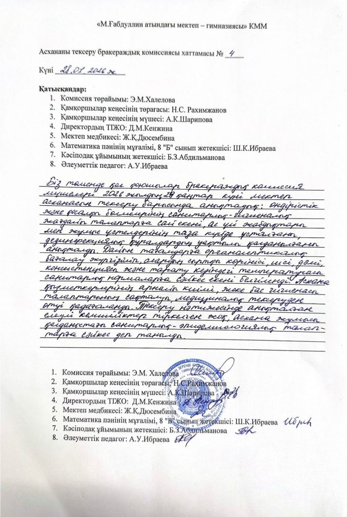 Бракераждық комиссияның 4 хаттамасы 28.01.2026ж.