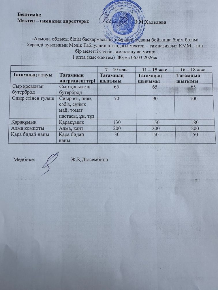 Тегін тамақтану 06.03.2026