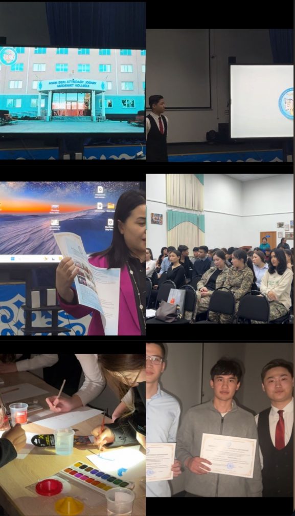Ақан сері атындағы жоғары мәдениет колледжінен ұстаздар келіп, 9-11-сынып оқушыларымен кездесу өткізді. Әр саладағы мамандар (музыка, дизайнер, актер, іс-шаралар ұйымдастырушы) оқушылармен "Шебер сынып" өткізді. Кездесу өте қызықты өтті. Оқушылар өз қалауларымен әр салаға қатысып, қызығушылықтарын танытты. Колледжге түсу үшін қандай құжаттар жинау керектігін және оқу тегін, жатақханамен қамтамасыз етілетіндері жайында айтып өтті. Кәсіби бағдар беру педагогы: Абдильманова Б.З.