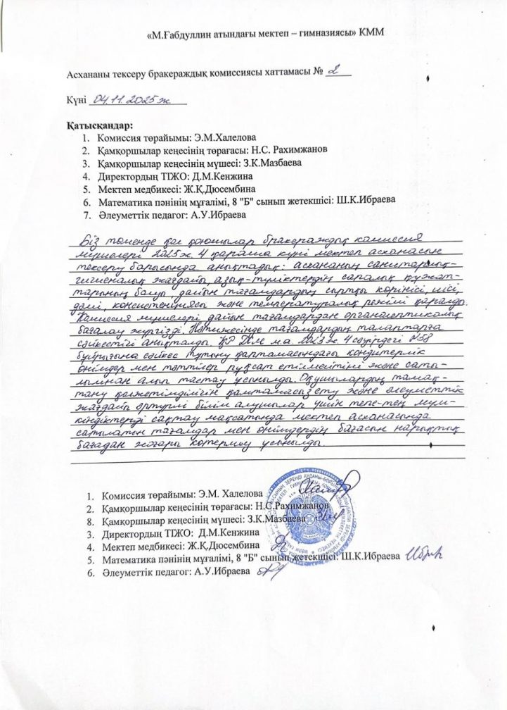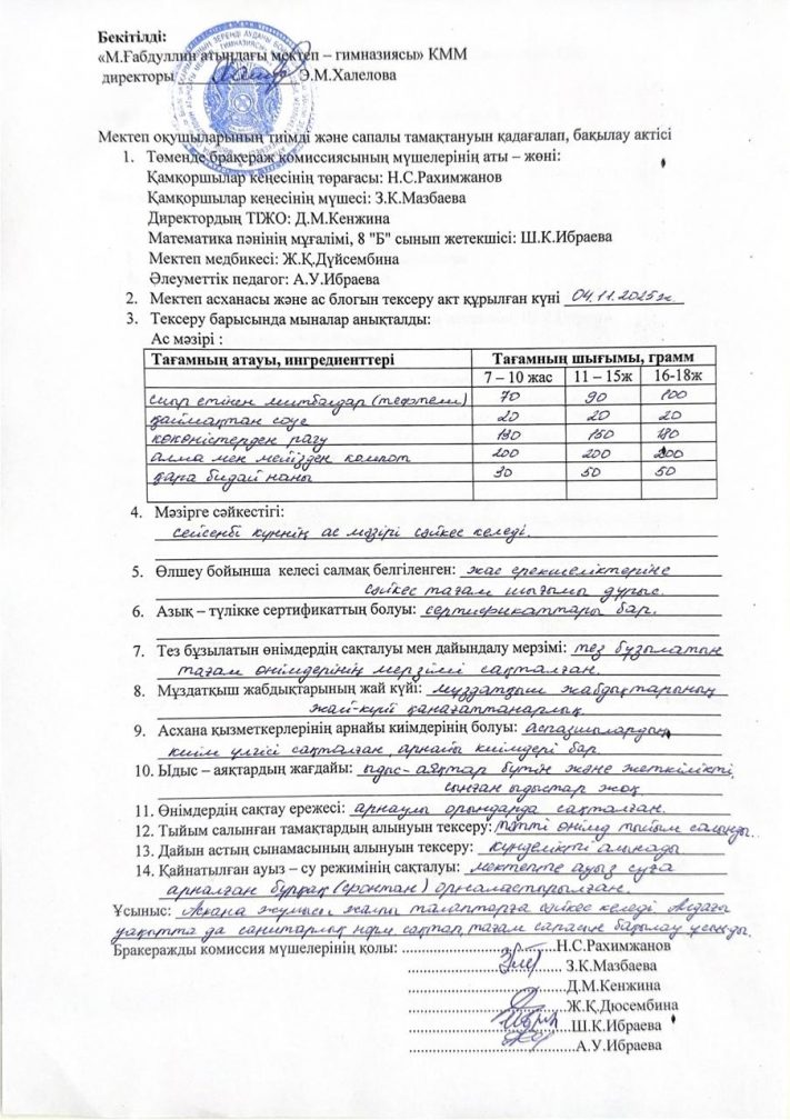 Бракераждық комиссияның 2 хаттамасы 04.11.2025ж.