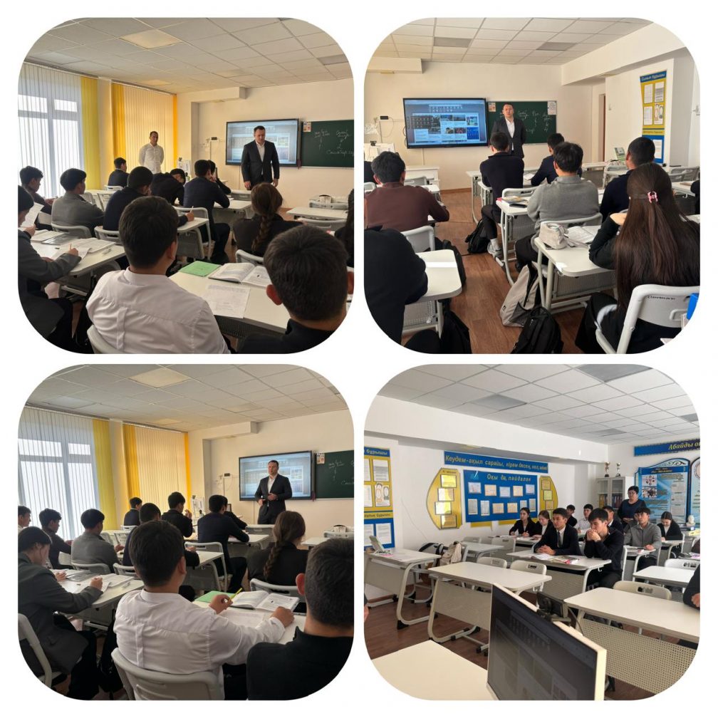 ҚР ҰҚК Алматы қаласы Шекара Академия қызметкерлері бөлім басшысы Сымбат Маратұлы және қызметкер Ш.А.Садахоз 10-11-сынып оқушыларымен кездесу өткізді. Ол жердің жағдайымен және қандай құжаттар жинау керектігі жайында айтып өтті. Оқу тегін, казарма бар, стипендия төленіп тұратыны жайында мәліметтер берді. Кәсіби бағдар беру педагогы: Б.Абдильманова