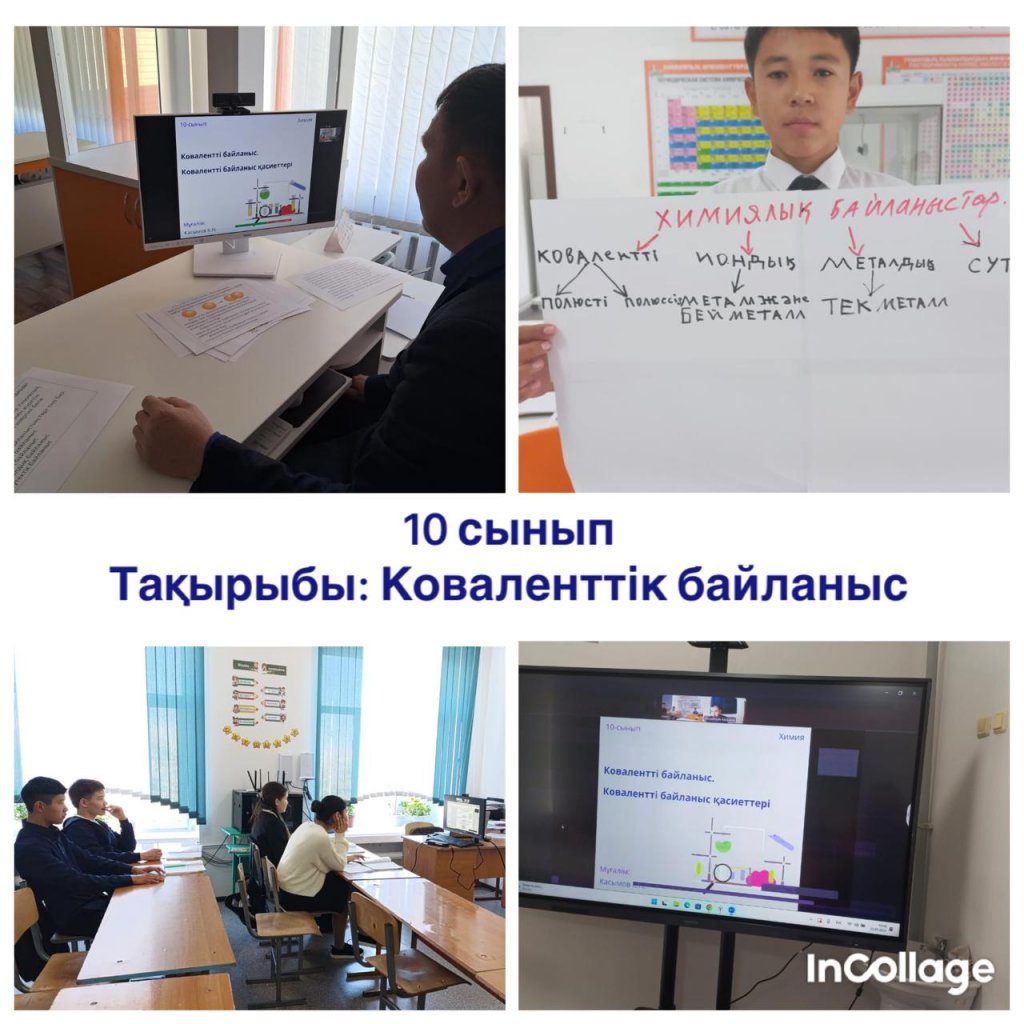10 сынып химия. Тақырыбы: Ковалентік байланыс Тірек мектеп жобасы аясында өткен онлайн сабақта оқушылар Ковалентік байланыс тақырыбы бойынша сұрақтарға жауап беріп, үлгі хаттармен танысты.Оқушылар белсенді қатысып, шығармашылық қабілеттерін көрсетті.