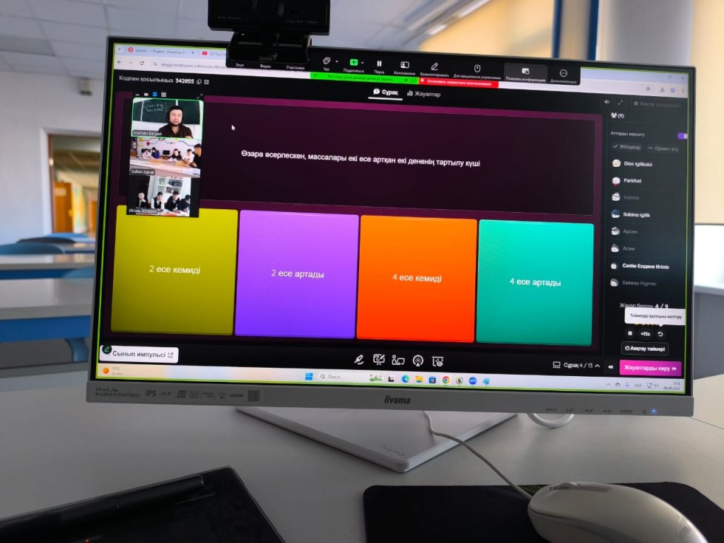 Тірек мектеп жобасы аясында өткен онлайн сабақта оқушылар инерция моментін түсініп, формулаларын біліп, есептерде қолдана алды. Сабақ барысында оқушылар белсенді болды, өткенді quizizz...