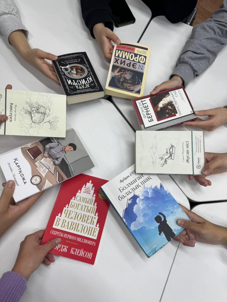 “Балалар кітапханасы” жоба аясында 8 “ә”сынып оқушылары өздерінің оқыған кітаптары бойынша ой бөлісті.Талдаудың басты мақсаты оқушыларды кітапқа баули отырып, ой өрісін дамыту.