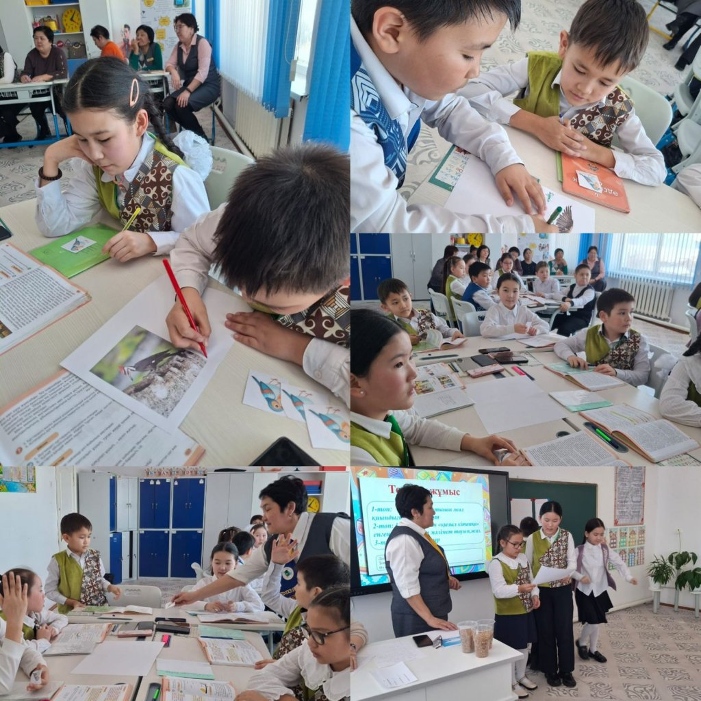 Сабақ барысында оқушылар күзде құстардың жылы жаққа қайту себептерімен танысып, мәтін мазмұнын талдады. «Ой қозғау» кезеңінде балалар құстар туралы өз ойларын ортаға салып, сұрақтарға жауап берді. Мәтін бойынша топтық жұмыстар ұйымдастырылып, әр топ шығарма мазмұнына қарай берілген тапсырмаларды орындап постер қорғады.